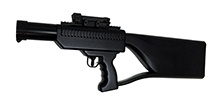 The Medusa is a competely self contained high power green laser device which provides the longest range non-lethal deterrence of any technology available. The rifle contains a UC-5 laser module and control electronics, dual batteries, and an integrated laser transmitter. Three picatinny rails allow the use of multiple aiming scopes for different operating conditions. An optional integrated rangefinder is available to prevent operation on targets within the NOHD.